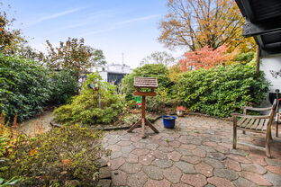 Der großzügige und sonnige Garten rundet das Gesamtpaket ideal ab. Fahrräder und Ähnliches können sowohl über den rückwärtigen Zugang, als auch über einen privaten seitlichen Weg neben der Eingangstür in den Garten geschoben werden. Wem dies an Abstellfläche nicht ausreicht: Die im Angebot enthaltene Garage ist nur ein paar Schritte entfernt.