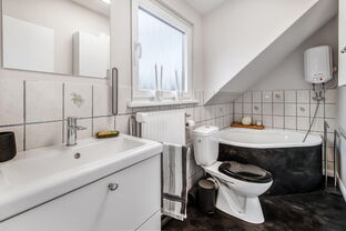 Insgesamt stehen sechs gut geschnittene Zimmer zur Verfügung, darunter drei Schlafzimmer und zwei Badezimmer. Die Badezimmer sind mit Badewanne und Dusche ausgestattet und erfüllen damit alle Anforderungen an modernen Wohnkomfort.