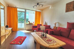 Die lichtdurchflutete Wohnung besticht mit ihrem durchdachten Grundriss und einem atemberaubenden Blick über die Umgebung. Das großzügige Wohnzimmer bietet Ihnen nicht nur viel Platz für kreative Wohnideen, sondern auch direkten Zutritt zu einem eigenen Balkon, der zum Entspannen und Verweilen einlädt. Genießen Sie hier die Sonne und den Blick ins Grüne.