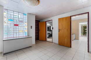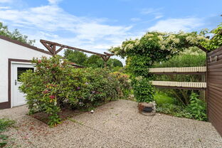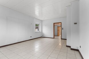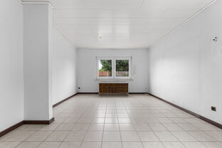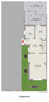 Das Erdgeschoss umfasst ein helles, geräumiges Wohnzimmer, eine separate Küche, einen Flur sowie ein großes Badezimmer und den Aufgang zum Obergeschoss. Durch die Küche gelangt man in den Wintergarten.
