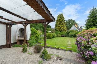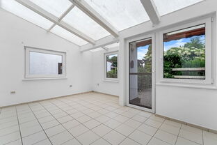 Der Wintergarten mit Ausgang auf die Terrasse sowie der gepflegte Garten laden zum Entspannen, Grillen oder als Spielbereich für Kinder ein.