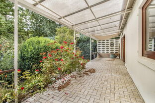 Eine große Terrasse sowie ein Garten eröffnet schöne Möglichkeiten für entspannte Stunden im Freien. Zusätzlich gehören eine Doppelgarage sowie mehrere praktische Schuppen zum Haus.