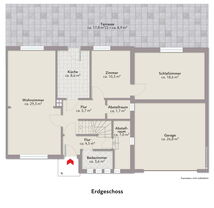 Das Haus verfügt über zwei Etagen, die als separate Wohnungen genutzt werden können. Im Erdgeschoss erwartet Sie eine Wohnung mit 3 Zimmern, einer Einbauküche samt Elektrogeräten sowie ein Badezimmer mit Wanne.