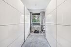Im Erdgeschoss finden Sie eine offene Küche, die direkt in das großzügige Wohnzimmer übergeht. Von hier aus gelangen Sie auf die Terrasse, die nahtlos in den Garten übergeht – ein idyllischer Rückzugsort, der durch seine grüne Bepflanzung zum Entspannen einlädt. Zudem gibt es im Eingangsbereich einen praktischen Flur, der den Zugang zu einem Gäste-WC ermöglicht.