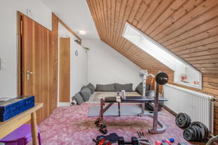 Das ausgebaute Dachgeschoss bietet zusätzlichen Raum, der nach individuellen Bedürfnissen genutzt werden kann, sei es als Büro, Hobbyraum oder Stauraum.