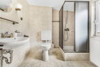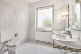 Das Dachgeschoss wurde etwa 1980 ausgebaut. Die geöffnete Decke zum Spitzboden sorgt hier für ein großzügiges Raumgefühl. Zusätzlich stehen ein Abstellraum – ideal als begehbarer Kleiderschrank oder Stauraum – sowie ein weiteres Badezimmer zur Verfügung.