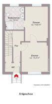 Im Erdgeschoss befinden sich zwei gut geschnittene Zimmer, die sich ideal als Schlaf-, Arbeits- oder Gästezimmer eignen. Ergänzt wird diese Etage durch ein Badezimmer mit Dusche. Im Obergeschoss wurde die Raumstruktur geöffnet, sodass ein großzügiger, heller Wohn- und Essbereich entstanden ist. Der Zugang zum Balkon bietet zusätzlichen Wohnkomfort und einen schönen Blick in den Garten.