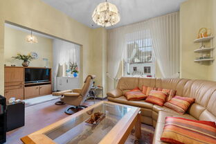 Dieses großzügige Zweifamilien-Reihenhaus aus dem Baujahr 1927 besticht durch seine klare Raumaufteilung, hohen Decken und die vielseitigen Nutzungsmöglichkeiten. Es bietet auf mehreren Ebenen viel Platz für individuelles Wohnen und Arbeiten. Das Haus ist vollunterkellert, wobei der Keller nicht nur zusätzlichen Stauraum bietet, sondern auch direkten Zugang zur Terrasse und zum Garten ermöglicht.