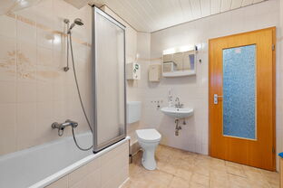 Im Hochparterre befinden sich zwei helle Zimmer, die sich ideal als Schlafzimmer, Büro oder Gästezimmer eignen, sowie ein großes Badezimmer, das mit seiner Größe und Funktionalität überzeugt.