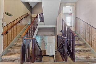 Das Obergeschoss überrascht mit einer besonderen Aufteilung: Über zwei Treppen gelangt man zum einen in einen praktischen Waschraum und zum anderen zum Dachboden. Zusätzlich verfügt die Etage über drei geräumige Schlafzimmer, einem Badezimmer mit Balkon sowie einem kleinen Waschraum, der optimal als Hauswirtschaftsbereich genutzt werden kann.