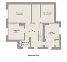 Der Dachboden ist aktuell nicht ausgebaut, bietet aber die Möglichkeit, weiteren Wohn- oder Arbeitsraum zu schaffen. Der Keller ist voll ausgebaut und verfügt über mehrere Räume, die sich als Abstellflächen, Hobby- oder Partykeller anbieten.