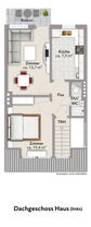 Dachgeschoss: Wohnung 3 mit ca. 42 m², 2 Zimmer, Küche (Einbauküche aus 2018), Bad, Gasetagenheizung und Balkon.