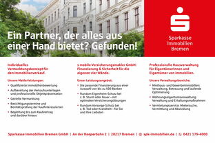Den Ortsteil Gröpelingen bezeichnet man als bunten, gediegenen Stadtteil. Geschäfte des täglichen Bedarfs, aber auch Schulen, Kindergärten und Arztpraxen, sowie Bus- und Straßenbahnhaltestellen sind fußläufig zu erreichen. Die Shoppingmall "Waterfront" erreichen Sie in wenigen Autominuten. Bremen-Nord und die Bremer City - mit Ihren vielfältigen kulturellen Angeboten - sind schnell zu erreichen. Das Gleiche gilt für die Autobahn A 27.