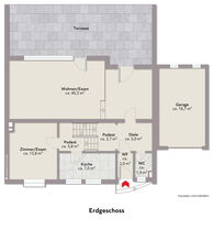 Der Eingangsbereich empfängt Sie mit einem praktischen Windfang, der für eine angenehme Trennung zwischen dem Außen- und dem Innenbereich sorgt. Im Erdgeschoss befindet sich ein großzügiger Wohn- und Essbereich mit Zugang zur großen Terrasse, die mit einer Markise ausgestattet ist, perfekt für gemütliche Stunden im Freien. Die vorhandene Einbauküche fügt sich harmonisch in das Raumkonzept ein. Ein Gäste-WC mit Fenster komplettiert das Erdgeschoss.