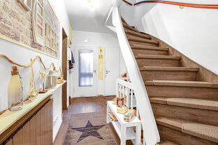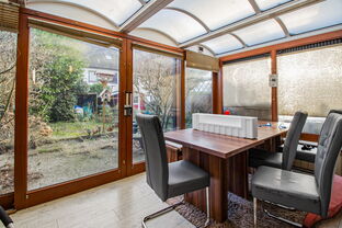 Beim Betreten des Hauses gelangen Sie in einen einladenden Flur mit angrenzendem Treppenaufgang. Das geräumige Wohnzimmer bietet direkten Zugang zum Wintergarten, der zusätzlichen Wohnraum schafft und einen schönen Blick in den Garten ermöglicht. Die angrenzende Küche bietet ausreichend Platz für eine gemütliche Essecke und ist funktional geschnitten.