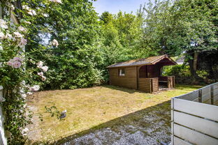 Besonders hervorzuheben ist das weitläufige Gartengrundstück mit viel Grünfläche, einer Terrasse sowie einem Gartenhaus, ideal für entspannte Stunden im Freien oder kreative Gartenprojekte. Eine Garage ist ebenfalls vorhanden. Das Haus ist teilweise unterkellert und bietet praktischen Stauraum.
