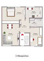 Die Wohnung im 2. Obergeschoss hat eine Wohnfläche von ca. 68 m² und ist seit dem 11.02.2018 vermietet. Die monatlich Nettomieteinnahme beträgt € 320,-.