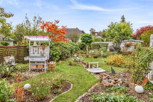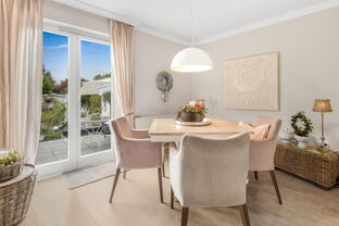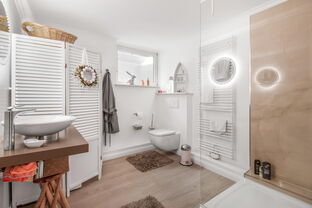 Die untere Wohneinheit wurde im Jahr 2024 vollständig modernisiert und überzeugt durch ihren hochwertigen, geschmackvollen Stil. Vier helle Zimmer, eine moderne Einbauküche mit Markengeräten, zwei gepflegte Badezimmer sowie edle Farbtöne von Farrow & Ball verleihen dieser Einheit ein besonderes Wohnambiente. Vom großzügigen Wohn- und Essbereich gelangt man direkt auf die sonnige Westterrasse mit schönem Blick in den Garten. Vom Souterrain hat am Zugang auf eine weitere tieferliegende Terrasse.
