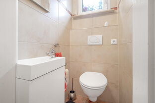 Im Erdgeschoss befinden sich außerdem die Küche mit Einbauküche, ein Gäste-WC, der Flur und ein Windfang.