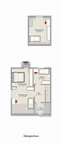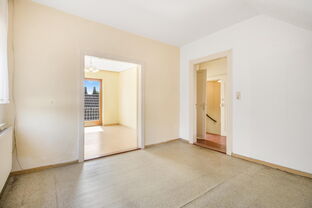 Im Dachgeschoss spiegeln sich die Raumstrukturen des Erdgeschosses wider: Zwei großzügige Wohn- oder Schlafräume, verbunden durch eine große Tür, sowie ein weiteres Zimmer – perfekt als Kinderzimmer, Büro oder Gästezimmer. Ergänzt wird das Obergeschoss durch ein zusätzliches Badezimmer.