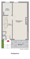 Im Hochparterre befinden sich ein großzügiges Wohnzimmer eine separate Küche sowie ein Gäste-WC, das vor rund 5 Jahren modernisiert wurde. Das Dachgeschoss beherbergt drei Schlafzimmer und ein Tageslichtbad, sodass die gesamte Familie ausreichend Platz findet.