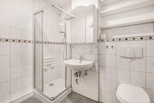 Ein separates Gäste-WC sowie ein praktischer Abstellraum ergänzen den funktionalen Grundriss.