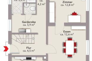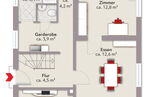 Eine Immobilie, die sowohl technisch als auch energetisch gut abschneidet und direkt bezugsfertig ist findet man aktuell sehr selten daher ist diese Einfamilienhaus ein wahres Juwel. Die knapp 110 m² Wohnfläche sind aktuell ideal für die Nutzung von zwei Personen ausgelegt. Der Grundriss kann allerdings mit wenig Aufwand verwändet werden. Im Erdgeschoss befindet sich ein großes und offenes Wohnzimmer mit angrenzendem Esszimmer, einer Küche sowie dem Bad und dem Gäste WC. Sowohl das Esszimmer als auch das Wohnzimmer könnten wieder verkleinert werden, um ein weiteres Schlafzimmer zu erhalten. Das Dachgeschoss verfügt über ein großes Schlafzimmer sowie ein Gästezimmer mit direktem Zugang zu der traumhaften Dachterrasse mit Blick ins Grüne.