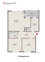 Der Grundriss ist praktisch gestaltet: Alle Zimmer sind direkt vom Flur aus erreichbar. Der großzügige Wohnbereich bildet das Herzstück der Wohnung. Hier ist genug Platz für eine gemütliche Sitzgruppe sowie einen Essbereich für gemeinsame Mahlzeiten mit Familie oder Freunden.