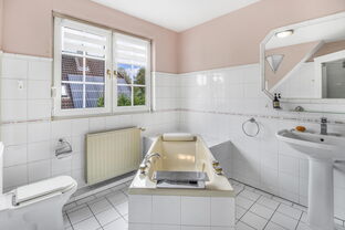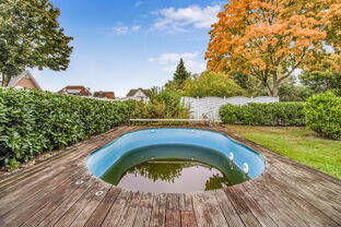 Über eine Vollholztreppe gelangt man in das Dachgeschoss. Hier erwarten Sie drei großzügige Zimmer, die individuell als Schlaf-, Gäste- oder Arbeitszimmer genutzt werden können. Das hell geflieste Tageslichtbad bietet viel Platz und ist mit einer freistehenden Badewanne und Dusche ausgestattet. Das Haus verfügt zudem über eine Garage, sowie einen zusätzlichen Stellplatz auf der Auffahrt. Der schön angelegte Garten lädt zum Verweilen ein und bietet mit seiner Terrasse und dem eigenen Pool die perfekte Möglichkeit, die sonnigen Tage in vollen Zügen zu genießen.