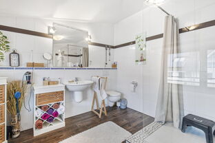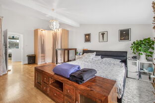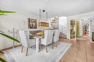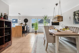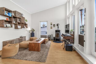 Wenn Sie die Wohnungstür öffnen ist es schwer vorzustellen, dass es sich bei dieser Immobilie um eine Eigentumswohnung handelt, denn so viel Platz und Wohnkomfort bietet häufig nur ein ganzes Haus. Durch wenige Stufen erreichen Sie das Obergeschoss eines Zweifamilienhauses, welches keine Wünsche offen lässt. In der ersten Etage befindet sich ein offenes Wohn- und Esszimmer mit angrenzender Küche, eine Diele mit Abstellraum, zwei Schlafzimmer und ein Vollbad. Durch eine geschmackvolle Wendeltreppe erreichen Sie das Dachgeschoss, welches über ein weiteres Schlafzimmer mit angrenzendem Badezimmer und zusätzliches Wohnzimmer mit Kaminofen verfügt. Eine ideale Alternative zum Garten ist die traumhafte Dachterrasse, die genug Platz für eine Sitzecke und mehr bietet.