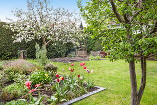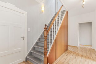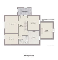 Die obere Wohnung (ca. 80 qm) verfügt über ein Wohnzimmer, zwei Schlafzimmer, eine Einbauküche und ein Wannenbad/WC. Der geschlossene Balkon kann als Wintergarten oder Atelier genutzt werden. Der ausbaufähige Dachboden eignet sich ideal als Spiel- oder Gästezimmer.