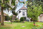 Die untere Wohnung (ca. 120 qm) umfasst zwei Wohnzimmer, ein Schlafzimmer, ein Wannenbad/WC, Veranda, Wintergarten, Küche mit Speisekammer sowie ein Gäste-Studio mit Duschbad/WC im Anbau. Der Zugang zu den Kellerräumen erfolgt direkt vom Flur.